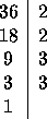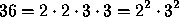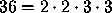 2.-Los divisores de 36 son, además del 1 y del 36, todos los números que se obtienen al multiplicar los factores primos entre sí. Por ejemplo, en el caso de , se obtienen como divisores: