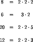 Si se toman los tres factores de 6 y 2, es decir: 3, 2 y 2, y luego se omite uno de los que se repite, al multiplicarlos, se obtiene:
